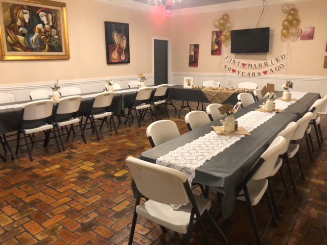 If these walls could talk! For 23+ years, we have hosted receptions, holiday parties, birthday parties, graduation celebrations and so much more. This room can comfortably seat up to 40 people for any meeting or celebration of your choosing. We can even make accommodations for parties with more than 40 people, just ask. This room requires a REFUNDABLE $100 deposit. Ask for details.
